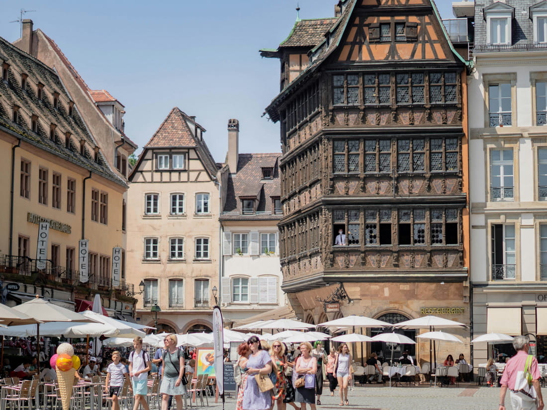 The center of the action. Maison Kammerzell overlooks the Cathedral square—proof that staying here means trading quiet streets for absolute convenience.